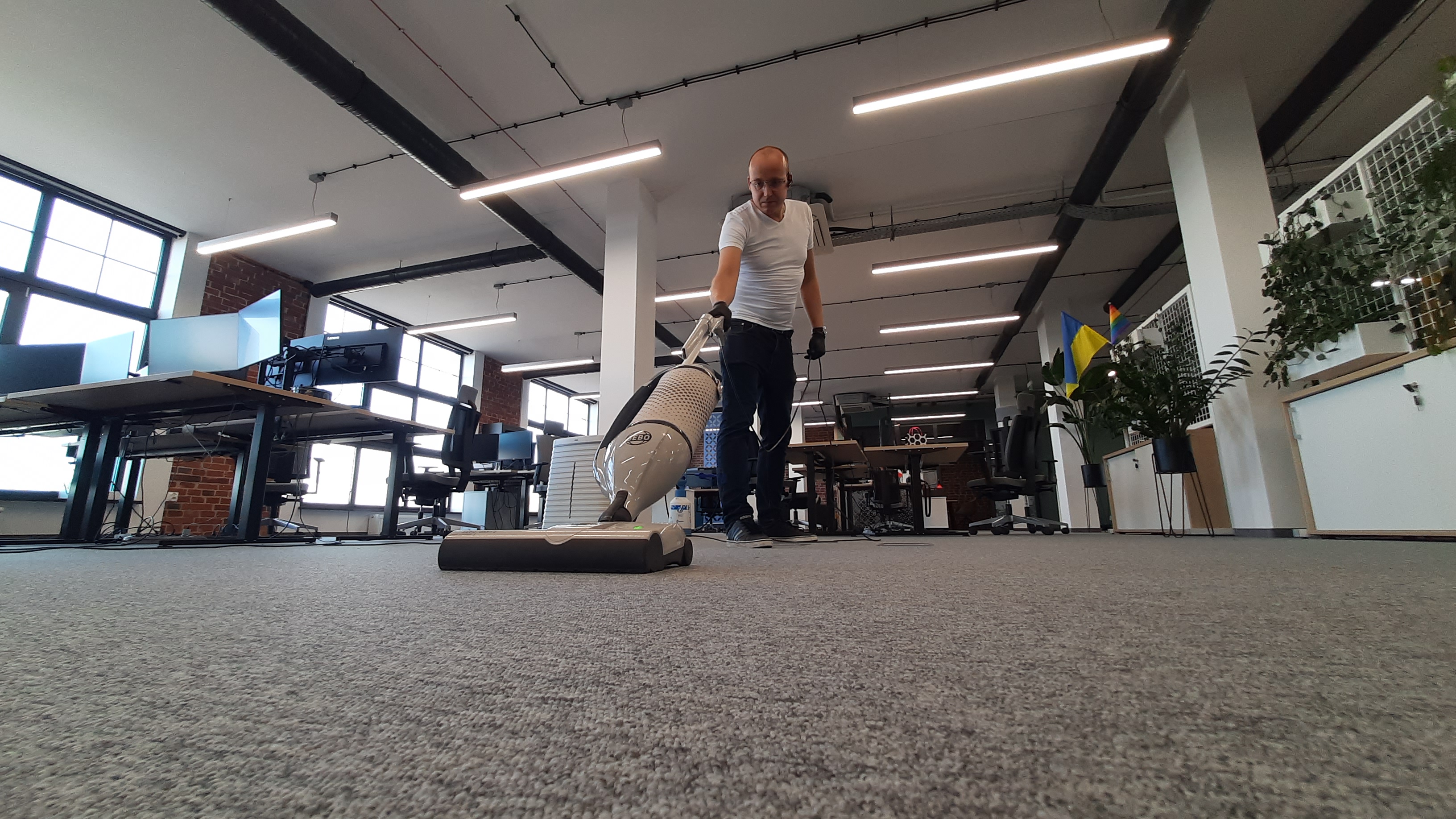 - Metoda "Na Sucho" (Low Moisture Cleaning - VLM): Jesteśmy ekspertami w dziedzinie czyszczenia w niskiej wilgotności. To technologia kluczowa dla biur 24/7, pozwalająca na użytkowanie wykładziny niemal natychmiast po usłudze.